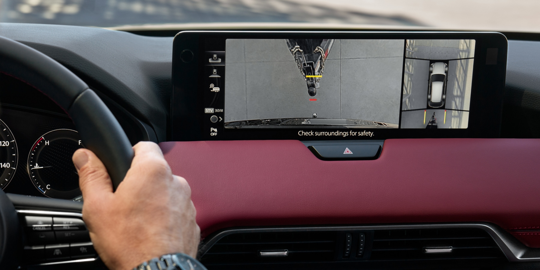 3 360º View Monitor may not provide a comprehensive view of the entire surrounding area of this vehicle. Always check your surroundings visually. Please see your Owner’s Manual for further details. Trailer Hitch View is operable on vehicles equipped with a Mazda genuine trailer hitch. Please see your Owner's Manual for further details.